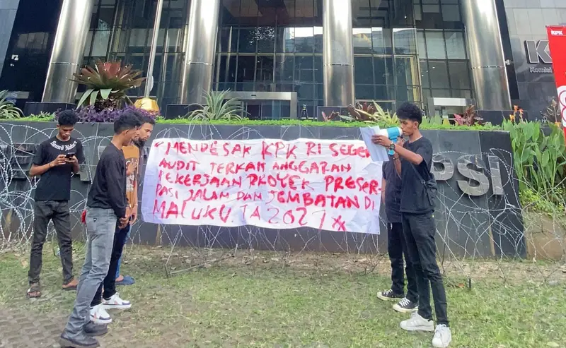 SAREKAT  — JAKARTA, Gerakan Mahasiswa Maluku (GEMMA-Jakarta) menggelar aksi demonstrasi di depan Gedung Komisi Pemberantasan Korupsi (KPK-RI), mendesak pengusutan tuntas terhadap anggaran proyek preservasi jalan dan jembatan tahun anggaran 2024 yang dikelola Balai Pelaksanaan Jalan Nasional (BPJN) Maluku.